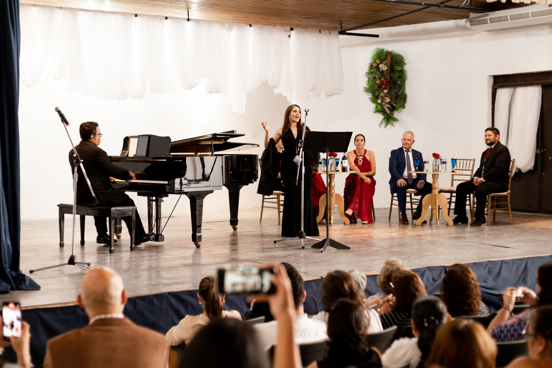 Contamos con la brillante participación de talentosos artistas: Alizon Erazo, Angela Bendeck, Melina Pineda, Carlos Marbe, Oscar Cáceres y Juan José Micheletti, quienes nos llevaron a un viaje musical inolvidable. Moisés Durón en el piano acompañó con maestría cada nota.